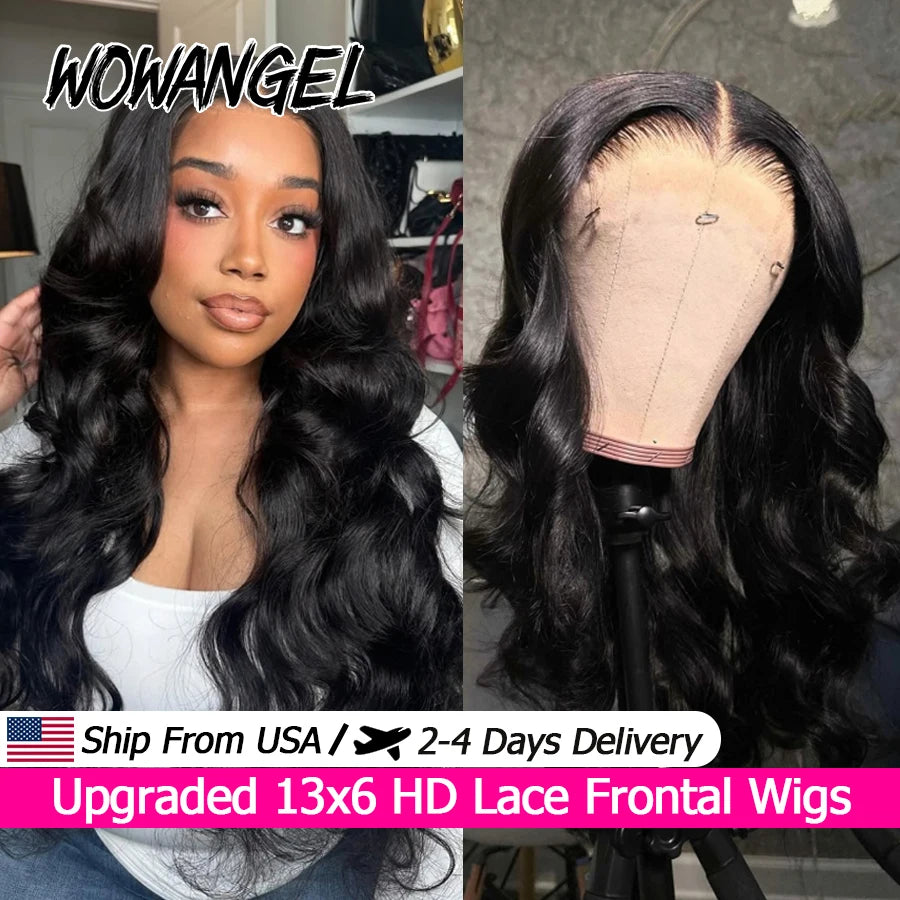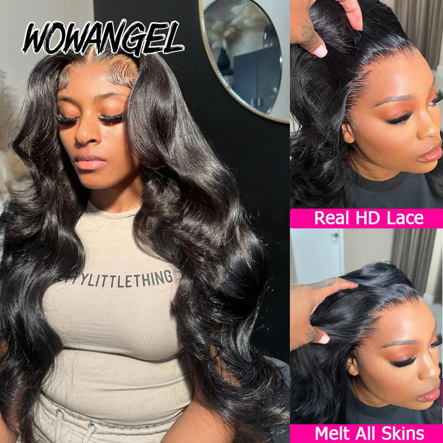 Wow Angel Body Wave 250% 13x6 HD Lace Frontal Wigs Skinlike HD Lace Front Human Hair Wigs Pre Plucked Brazilian hair For Women